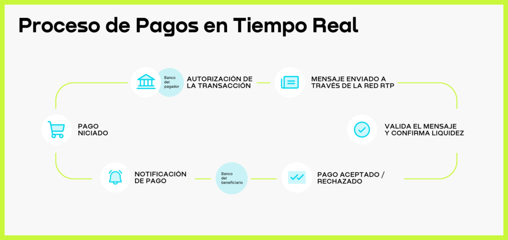Después de la aprobación, la solicitud de pago se dirige a través de la red RTP, gestionada generalmente por una autoridad financiera central. A diferencia de los sistemas tradicionales que procesan por lotes, el RTP procesa cada pago individualmente y en tiempo real, garantizando una ejecución inmediata.