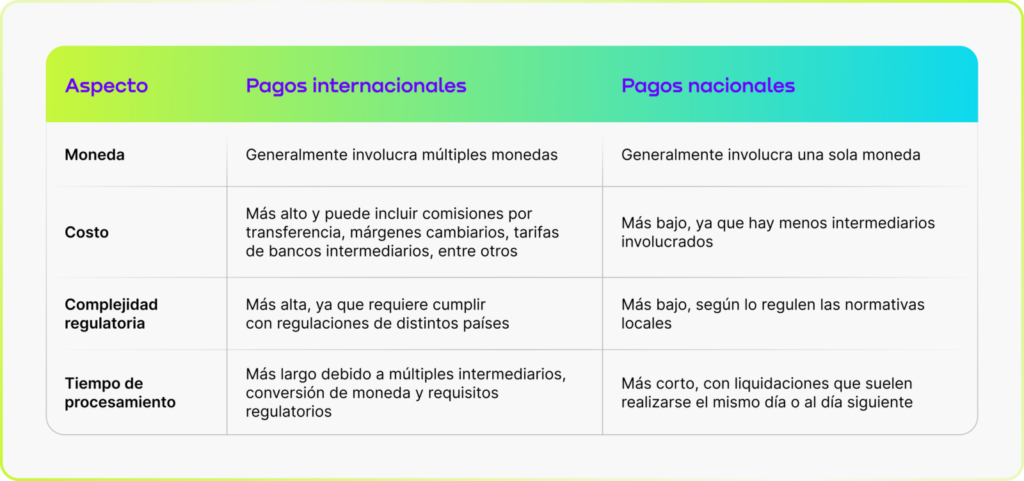 A pesar de estas diferencias, los pagos internacionales son esenciales porque permiten a las empresas aprovechar oportunidades más allá de su mercado local, ya sea una base de consumidores más amplia o un grupo de talento altamente calificado.