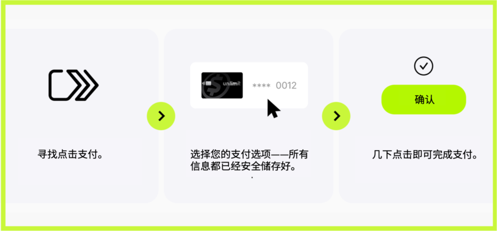 点击支付为企业提供了一种无缝且安全的方式,可以提高转化率、改善客户体验并减少欺诈。通过消除客户在结账时手动输入卡片详细信息的需求,点击支付创造了一个更快速、更直观的支付过程。这种便利性鼓励更多人完成购买,从而带来更高的成功率和更多的转化。